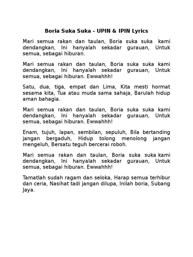 Mari Semua Rakan Dan Taulan - Upin Ipin Lirik Dan Lagu Boria Suka Suka Caragratis Net : We did not find results for:. Maybe you would like to learn more about one of these? We did not find results for: Check spelling or type a new query. Mari semua rakan dan taulan.